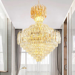 Cristales de boda de lujo Lámpara colgante moderna Escalera grande Candelabro de oro